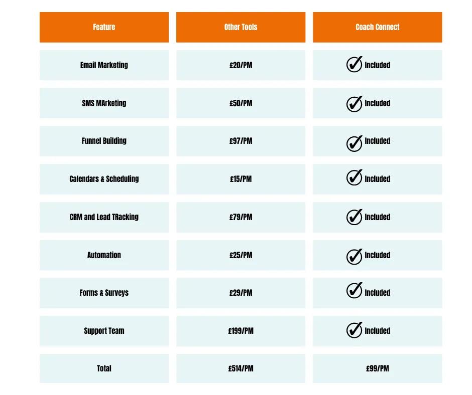 You’ll also discover just how cost-effective Coach Connect is for your business compared to other courses and alternatives in the market. For a fraction of the price of Typeform, Activecampaign and Clickfunnels, you’ll gain access to comprehensive CRM that will attract, nurture and convert your leads as well as expert guidance and 24/7 support with no hidden costs.